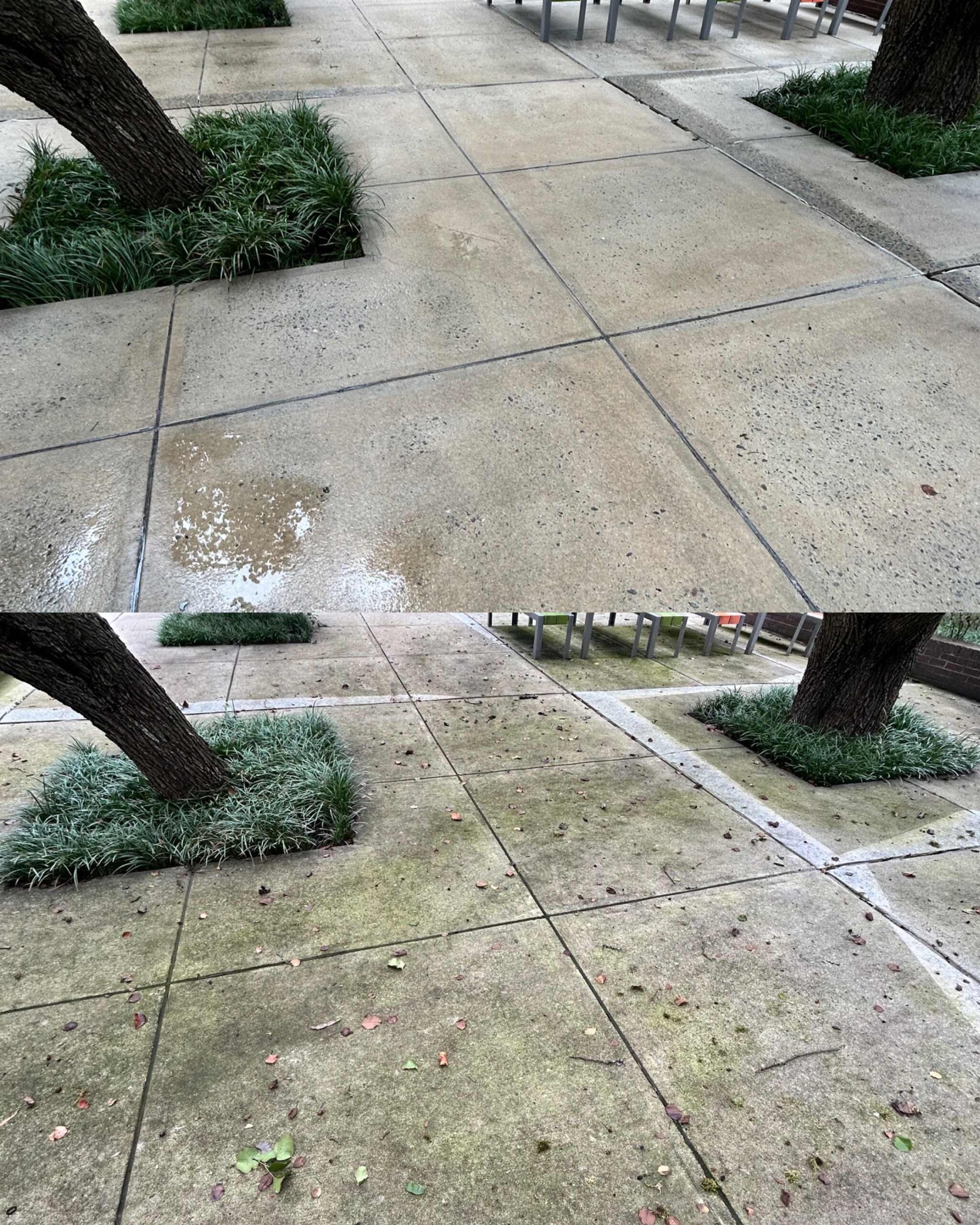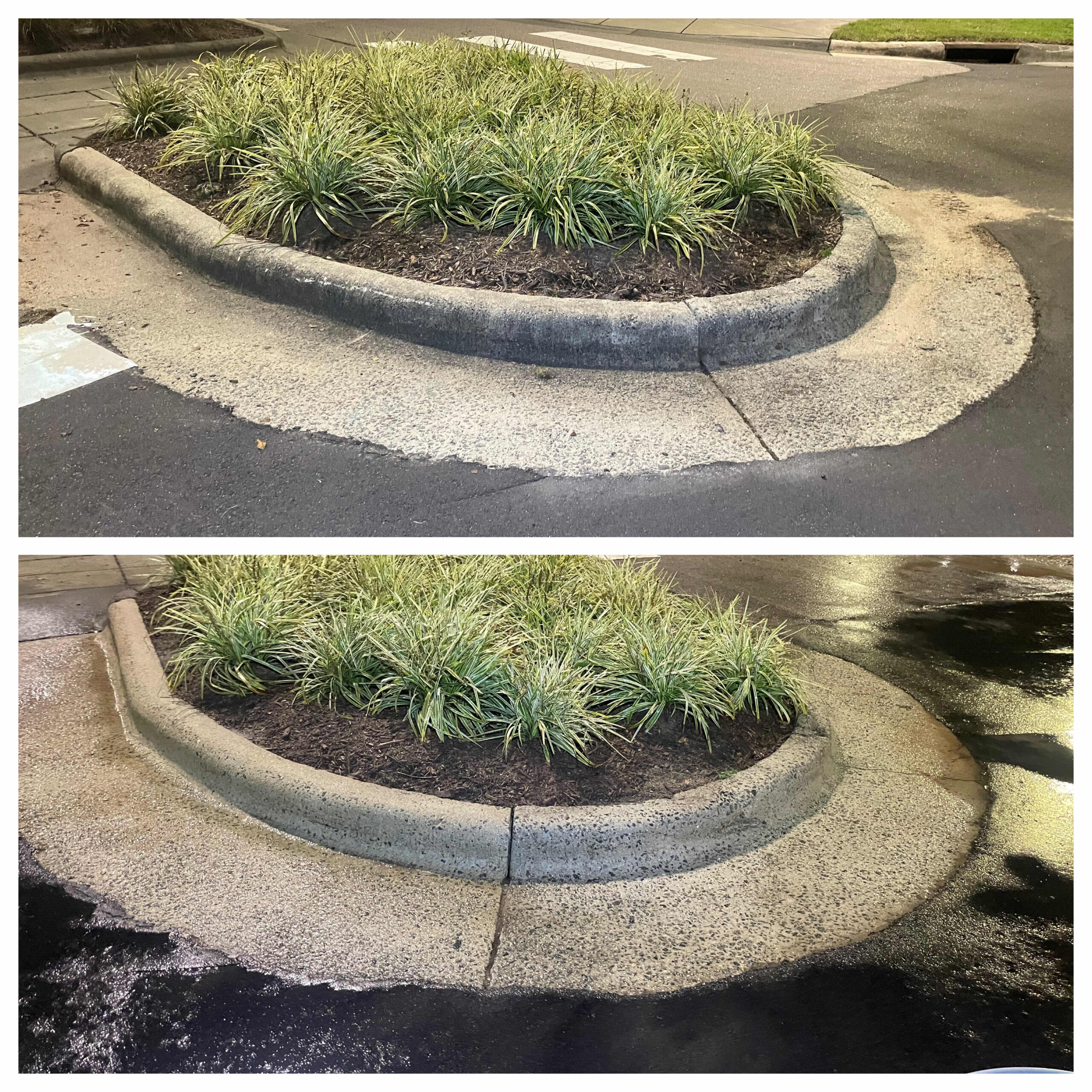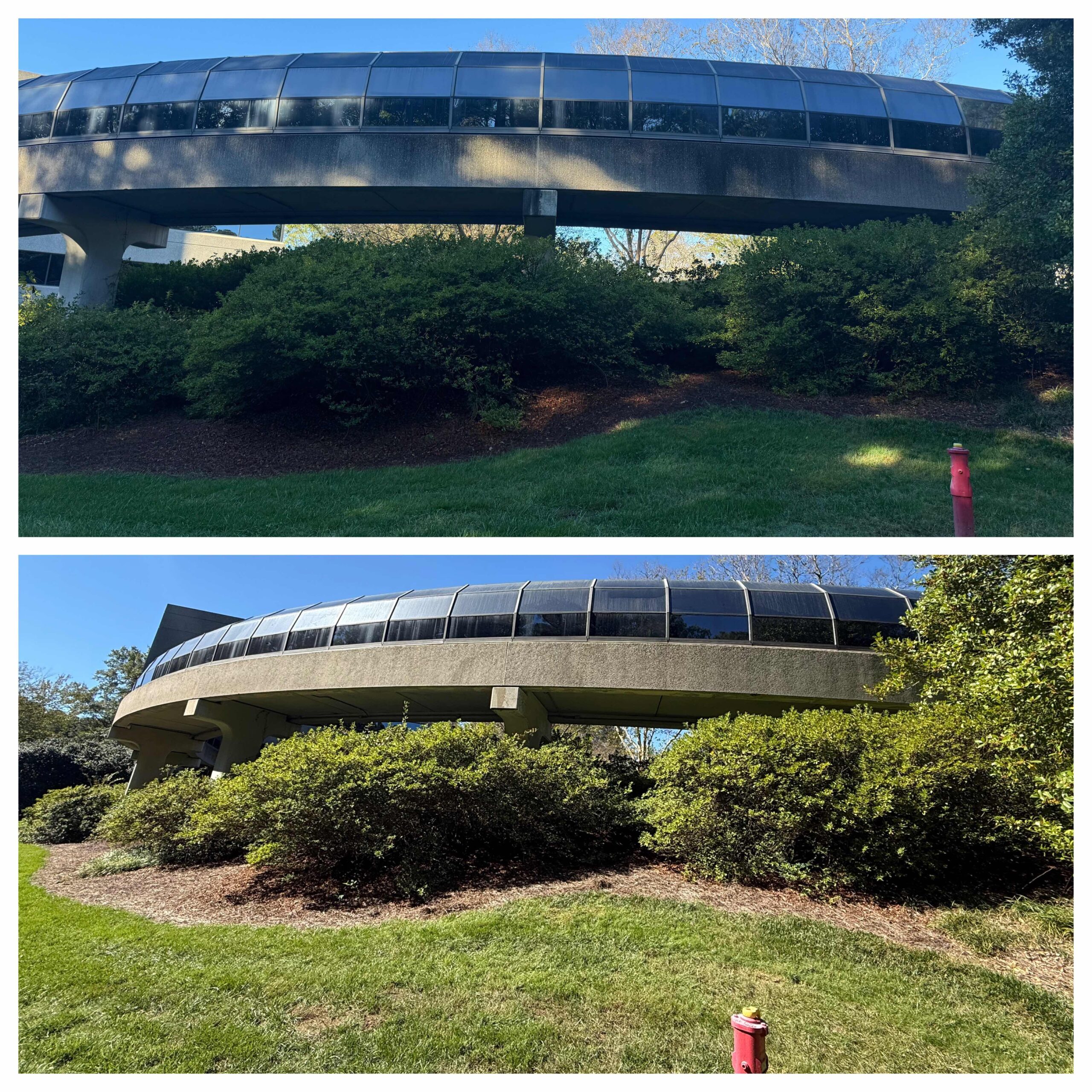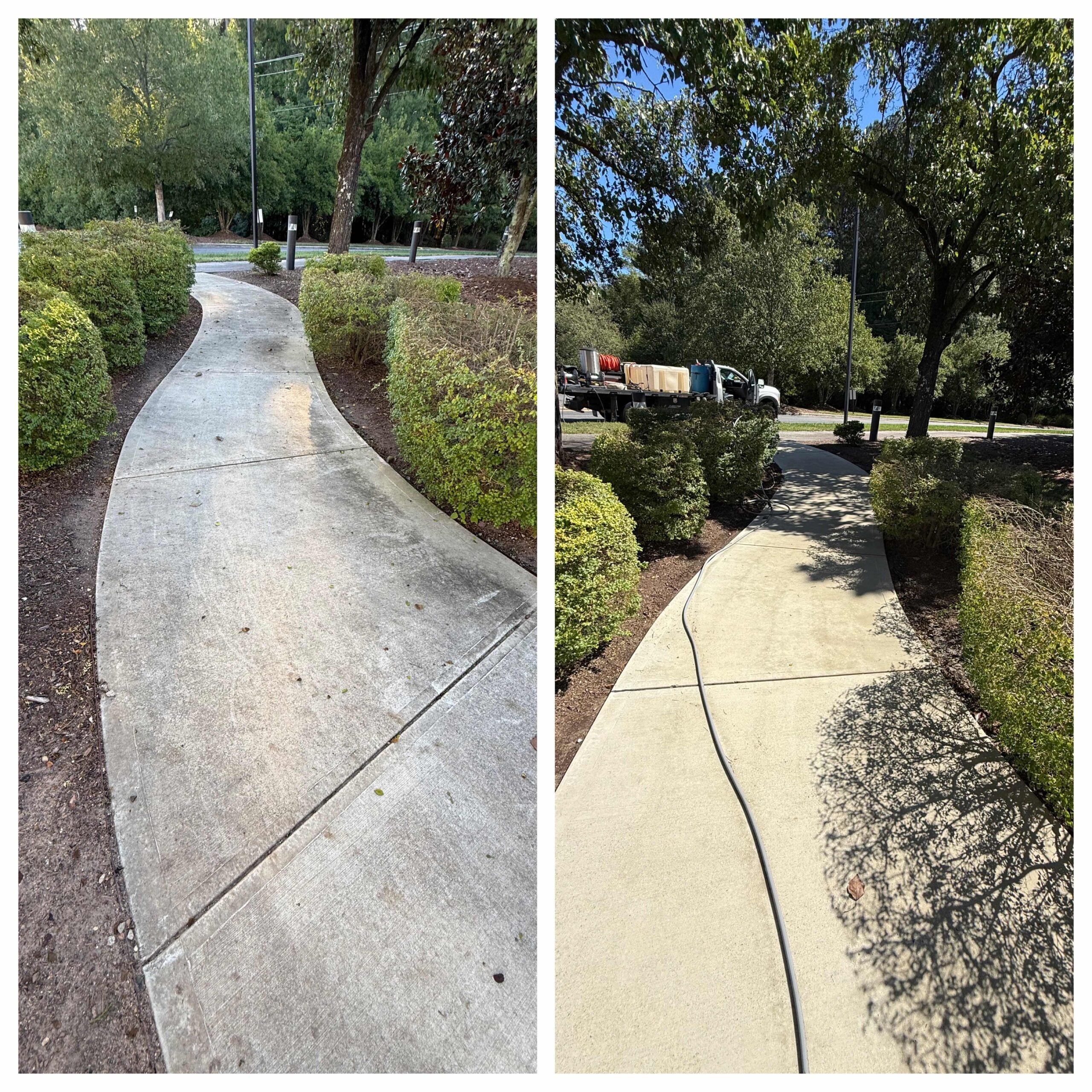 No other pressure washing service provider in the Raleigh area could complete a job of 100+ hours in under two weeks — but SOR got the job done! This all-hands-on-deck operation had an order of “if you see it, clean it.” A team of skilled technicians pressure washed all buildings, curbs, sidewalks, benches, fixed art and more throughout the park, and softwashed guard shacks and canopies. Special attention was paid not just to cleaning organic but also inorganic material including rust, grease, oil, tire marks and any evidence of foot traffic.