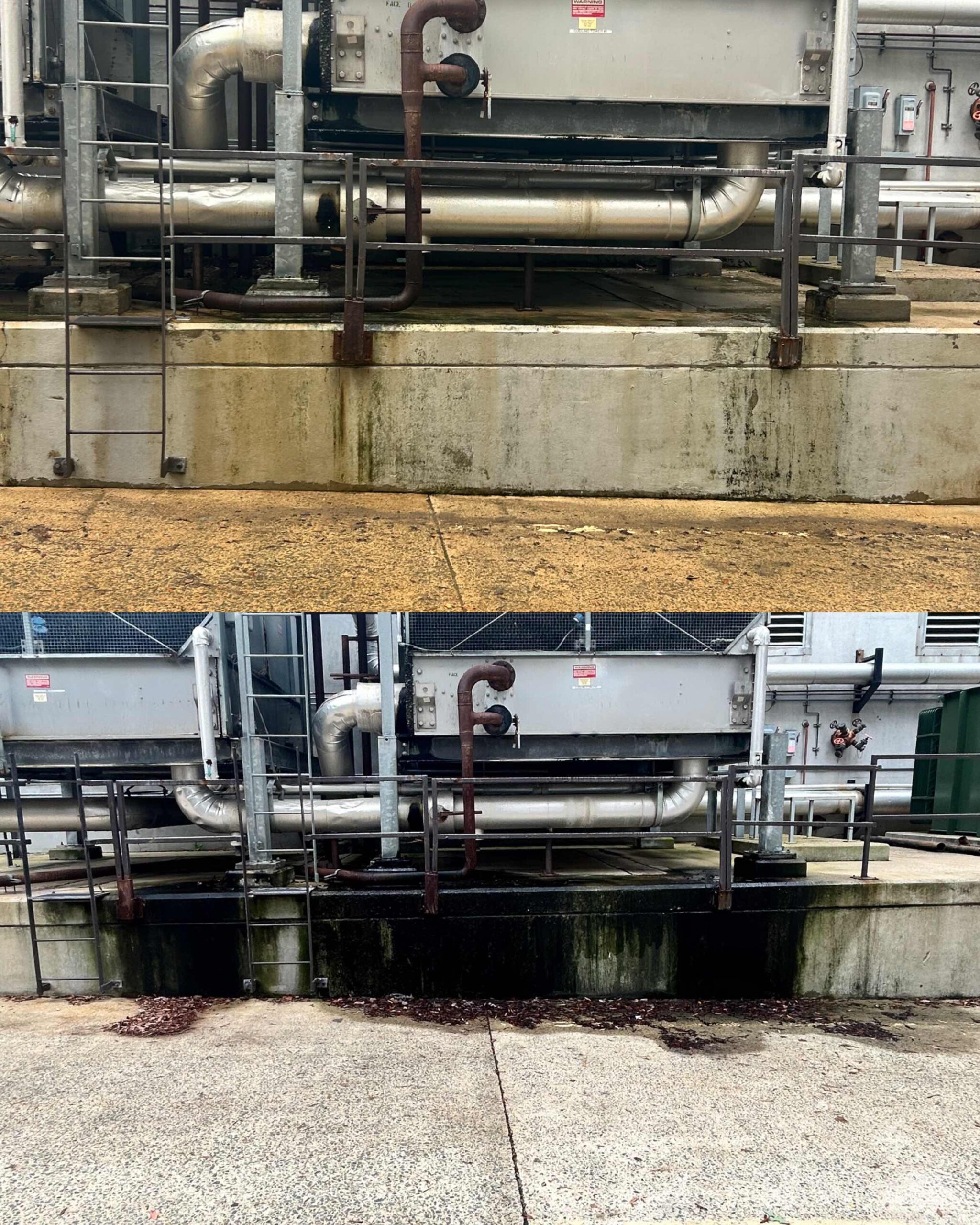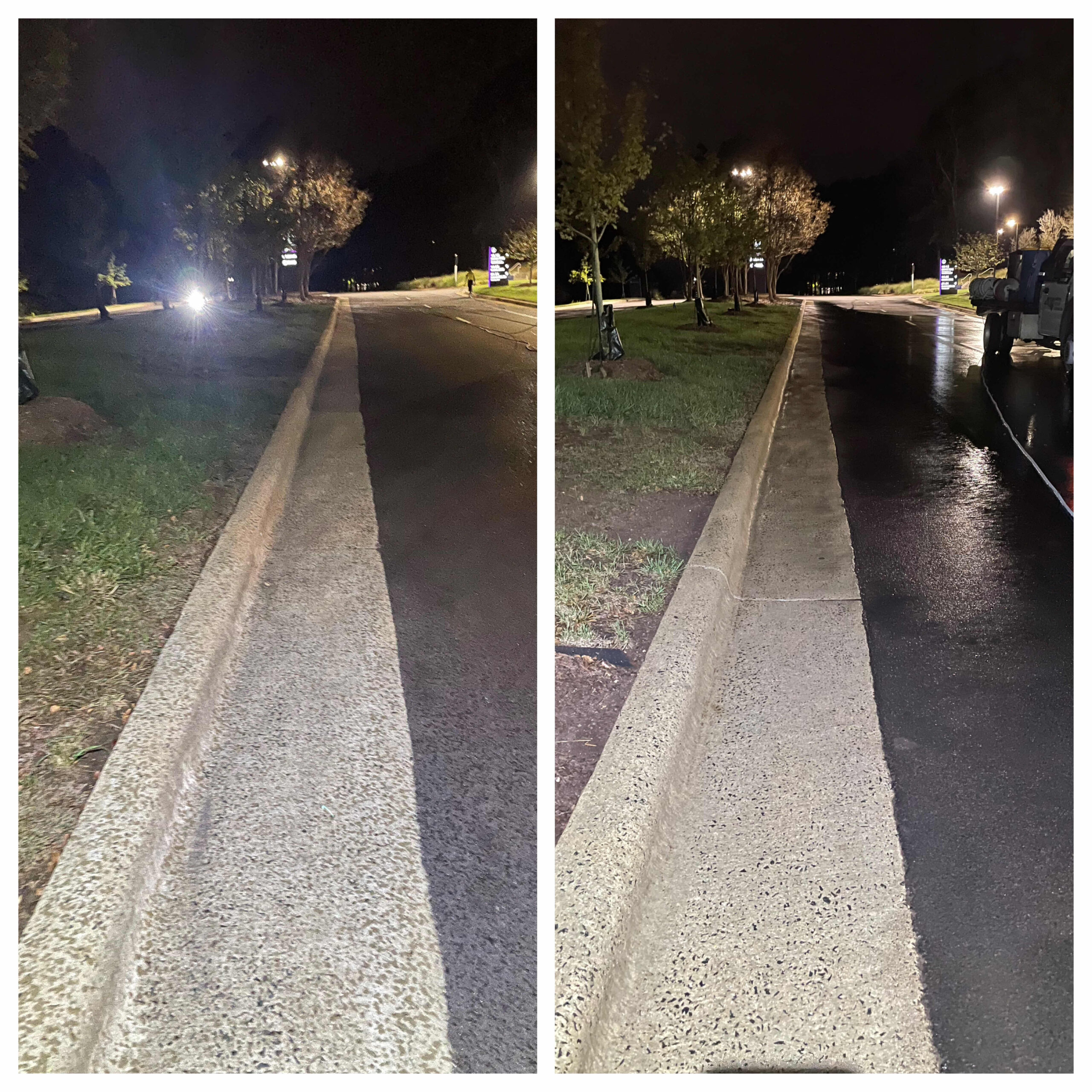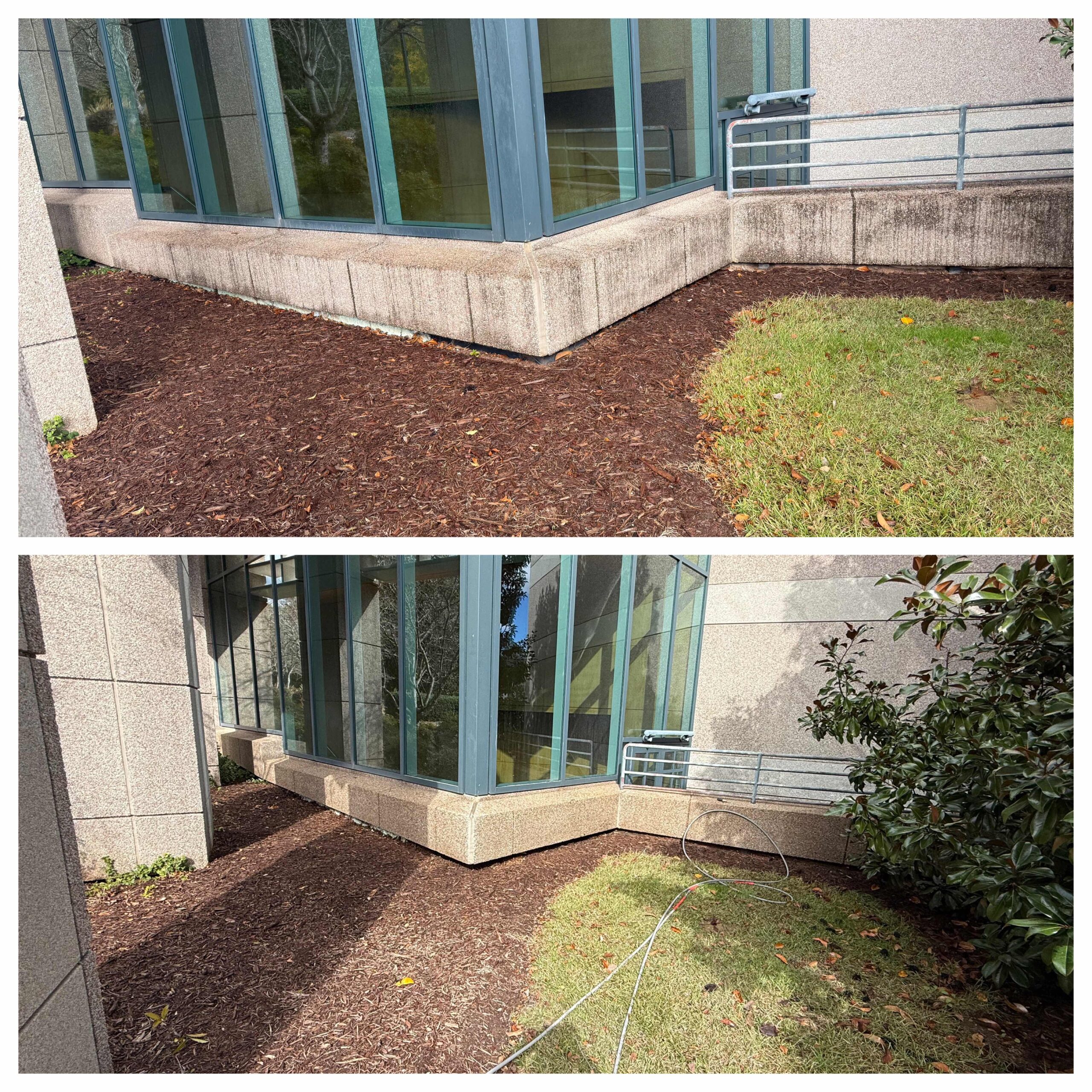 No other pressure washing service provider in the Raleigh area could complete a job of 100+ hours in under two weeks — but SOR got the job done! This all-hands-on-deck operation had an order of “if you see it, clean it.” A team of skilled technicians pressure washed all buildings, curbs, sidewalks, benches, fixed art and more throughout the park, and softwashed guard shacks and canopies. Special attention was paid not just to cleaning organic but also inorganic material including rust, grease, oil, tire marks and any evidence of foot traffic.