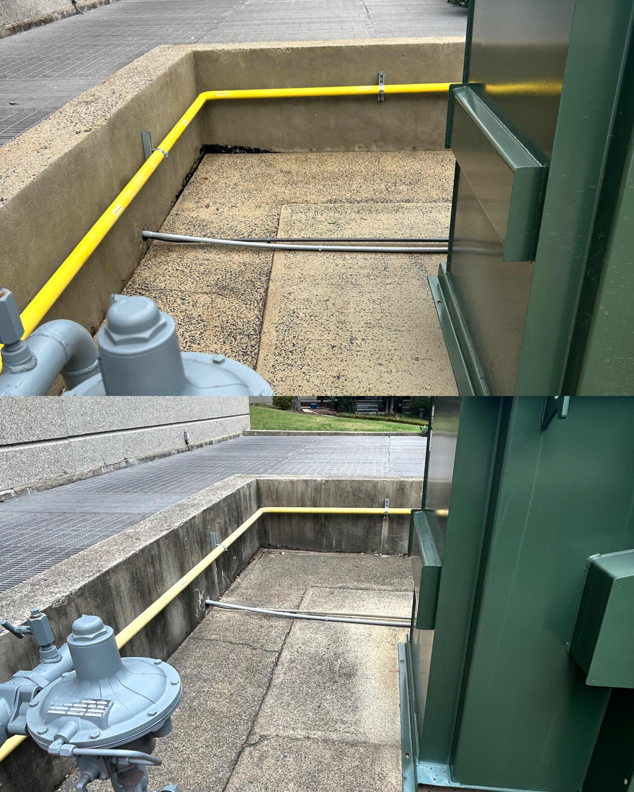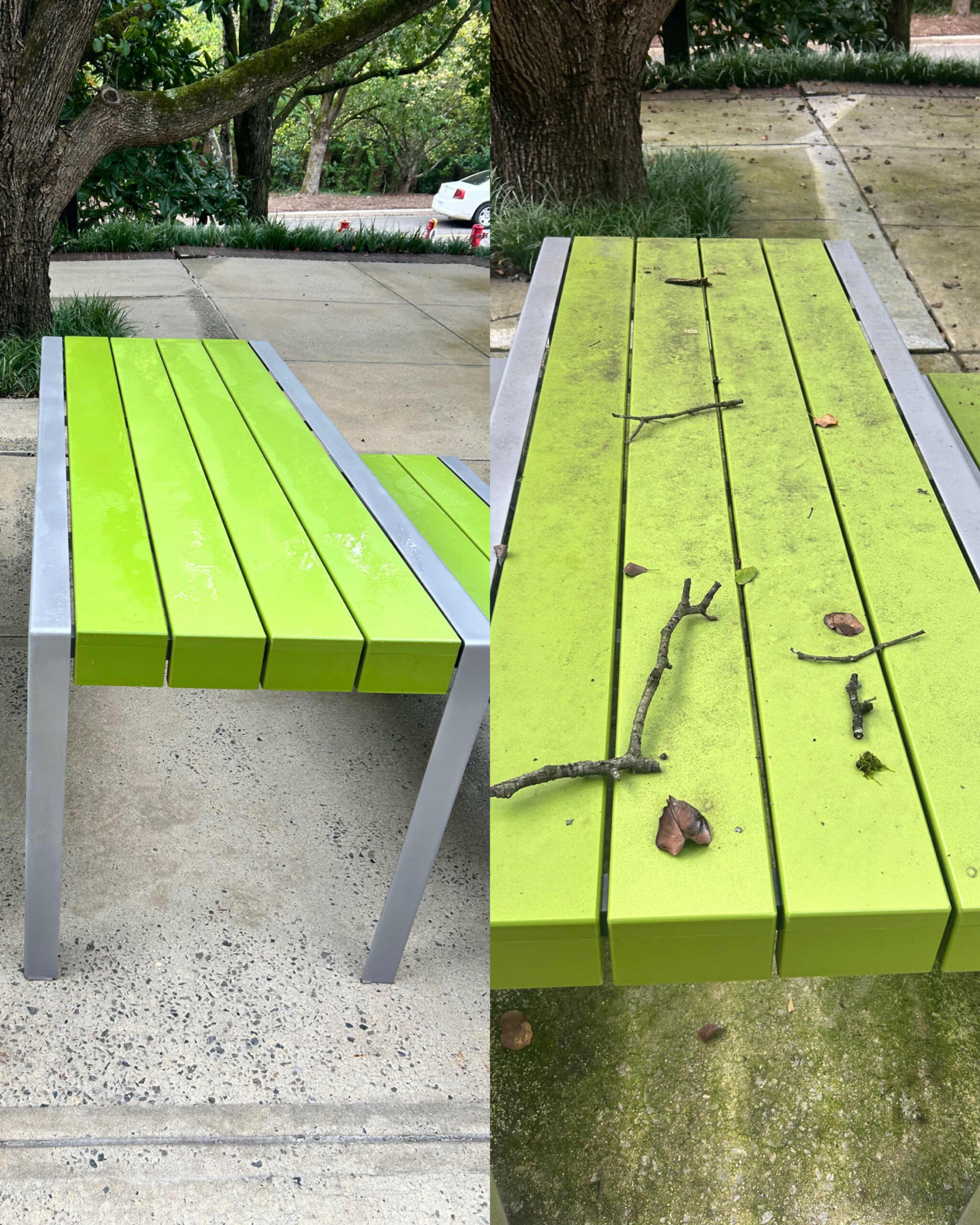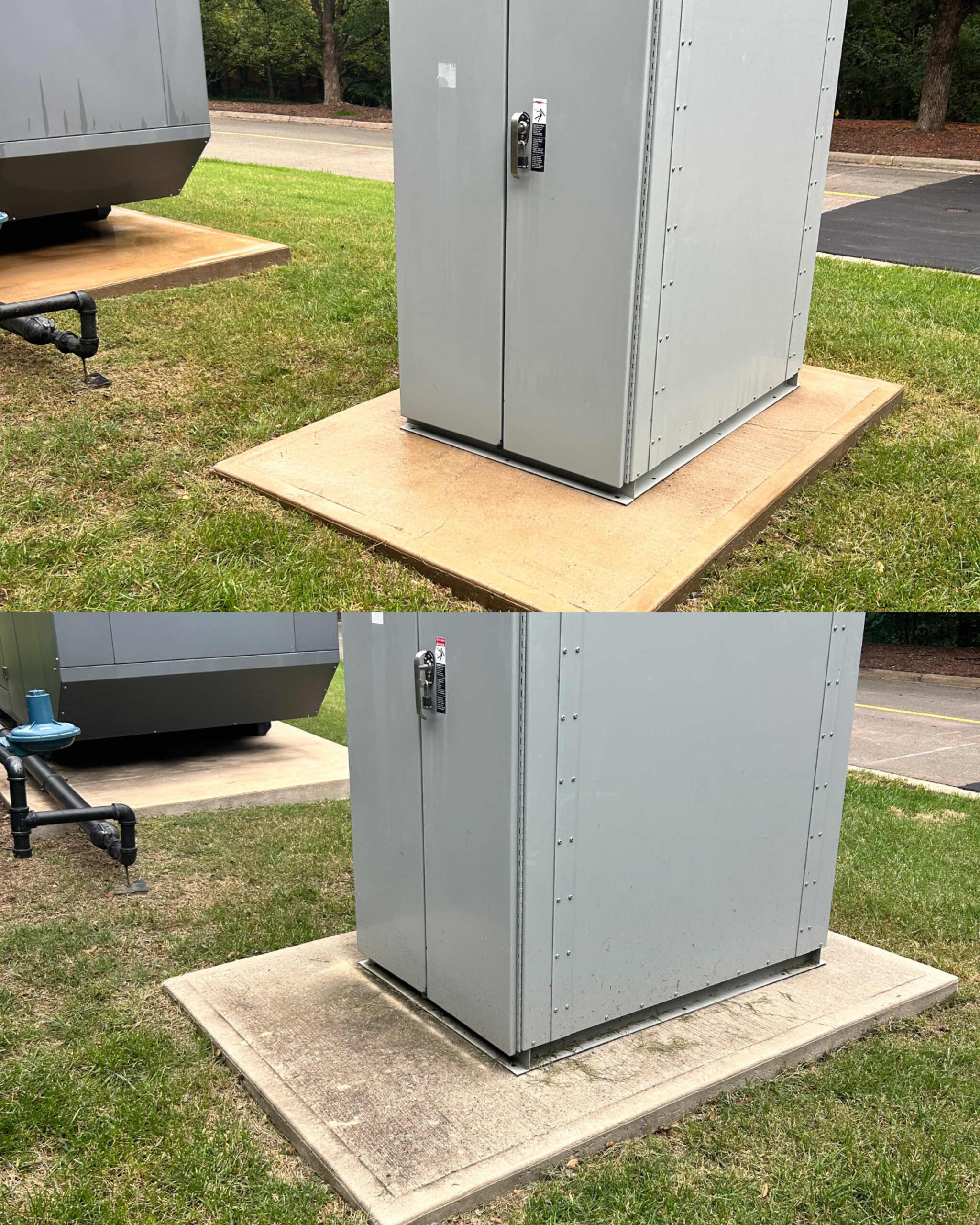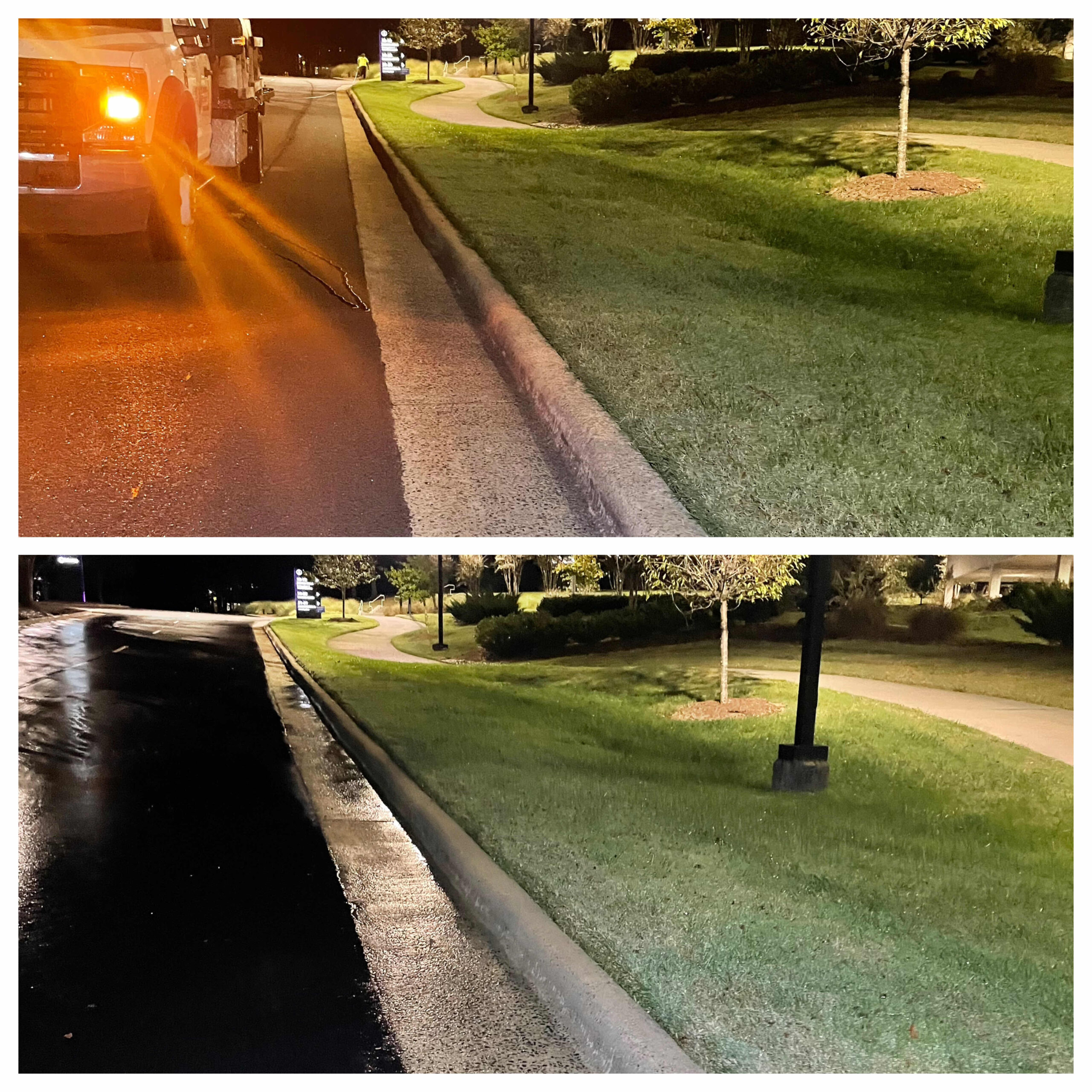No other pressure washing service provider in the Raleigh area could complete a job of 100+ hours in under two weeks — but SOR got the job done! This all-hands-on-deck operation had an order of “if you see it, clean it.” A team of skilled technicians pressure washed all buildings, curbs, sidewalks, benches, fixed art and more throughout the park, and softwashed guard shacks and canopies. Special attention was paid not just to cleaning organic but also inorganic material including rust, grease, oil, tire marks and any evidence of foot traffic.